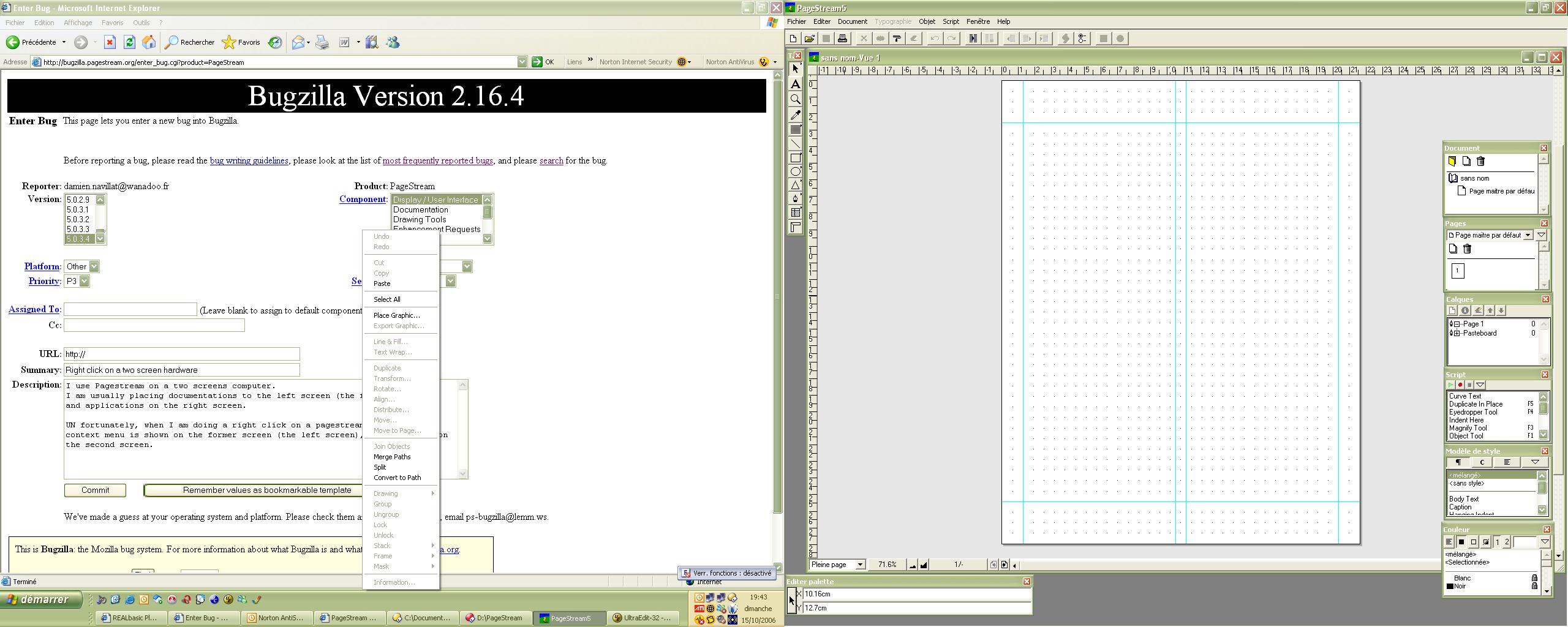 Bug #132 - Right click on two screen hardware shows context menu on wrong screen| Product: | PageStream 5.0.3.4 (Windows) | Reported By: | Damien Naviliat |