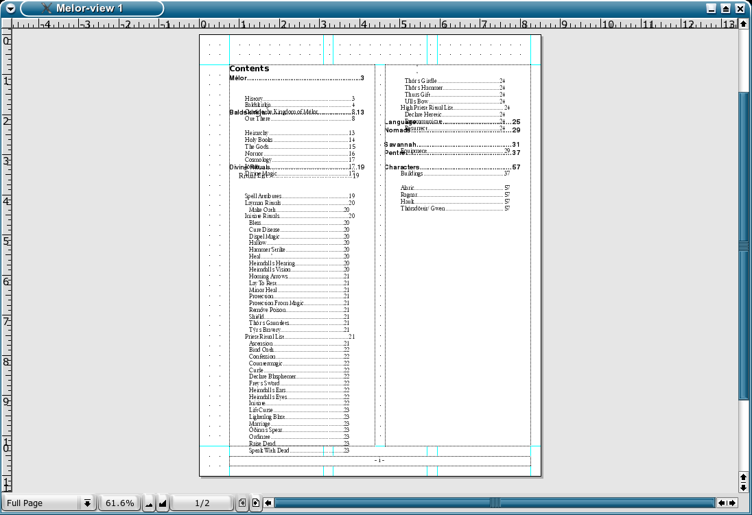 Text is not always shown correctly. The lower the magnification the worse the problem when present. The referenced graphic is a snapshot of the PgS window. In it you can clearly see lines of text overlapping: no text should be overlapping in this case and magnifying the view gradually shifts the text into position. Note that printing (when it was still printing under SuSE 9.1) was fine. It isn't the case in the provided snapshot, but in one case the misplaced text was italics text embedded in an otherwise normal paragraph.